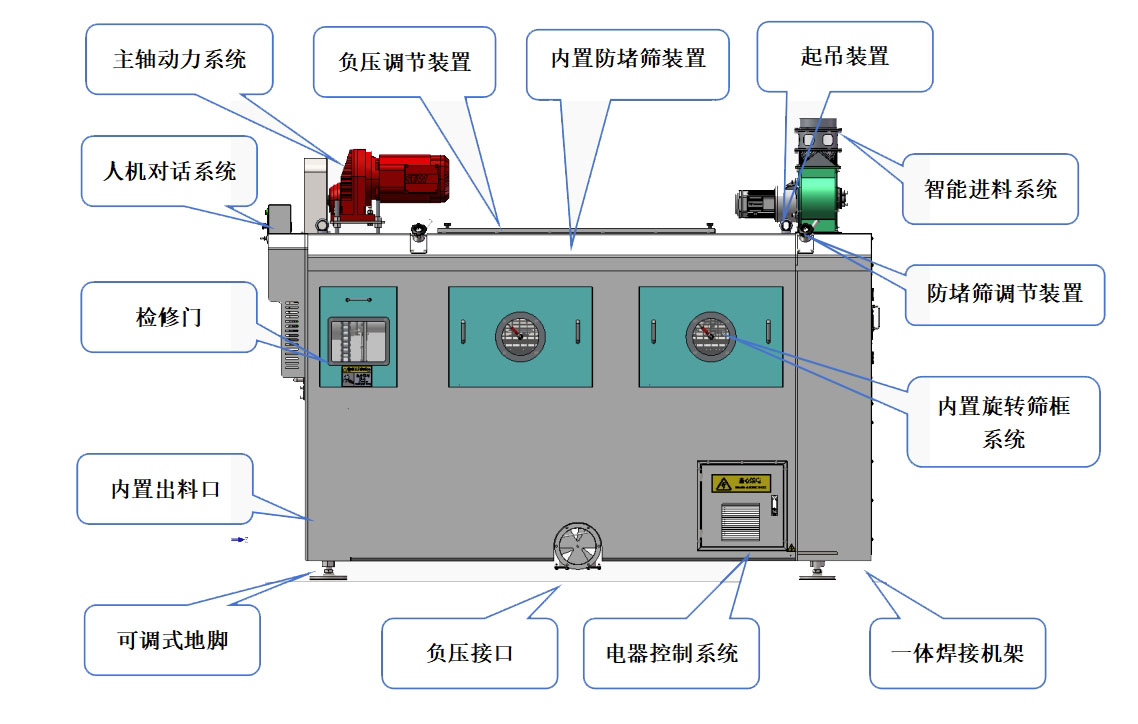 3、篩孔防堵系統(tǒng):可實(shí)現(xiàn)對(duì)設(shè)備篩孔不間斷的清里,防止篩孔堵塞。